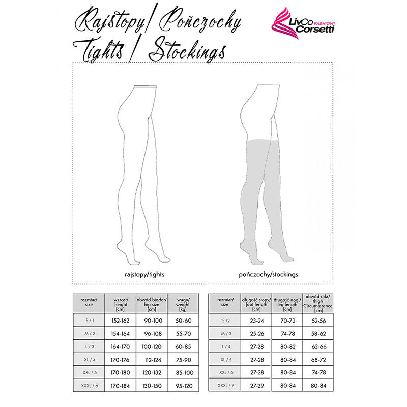 Les bas uniques de LivCo Corsetti ont été créés pour les femmes libérées, sûres d'elles et qui n'ont pas peur de leur sex-appeal. Les bas sont un élément de la garde-robe féminine qui a conquis le cœur de nombreuses femmes et autres. Ils soulignent magnifiquement la beauté des jambes des femmes, tout en étant sexy et enflamment les sens. Le modèle est une combinaison d'une ceinture en dentelle et de bas qui s'accordent parfaitement avec d'autres éléments de lingerie érotique. Des sous-vêtements pour les occasions spéciales, mais aussi pour tous les jours. La dentelle sur la cuisse attirera certainement l'attention sur les jambes. Ce sont des bas uniques en leur genre qui révèlent une surprise sensuelle à leur époque. Un modèle de sous-vêtements créé pour les vraies tentatrices qui veulent se démarquer. Les bas sont fabriqués dans un matériau durable de haute qualité, ils dureront donc longtemps. Disponible dans les tailles SL